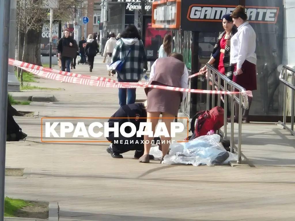 Тело 29-летнего мужчины обнаружили утром 2 апреля на улице Красной в Краснодаре, возле остановки Хакурате. Рядом лежал большой красный туристический рюкзак, а само тело было накрыто тканью. На месте происшествия находился сотрудник полиции.
